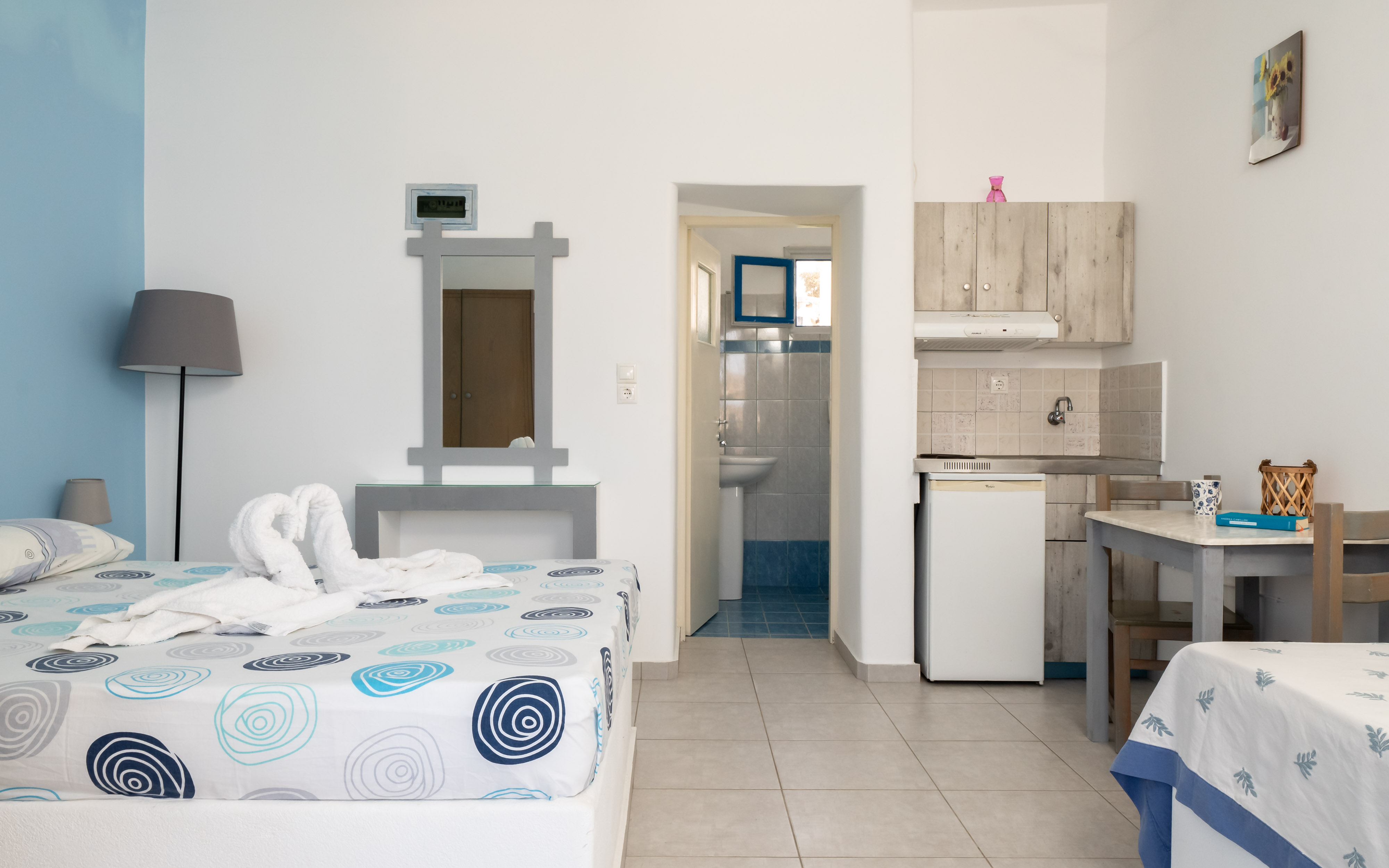 Located in the heart of Iliovasilema village in Donoussa, our standard studio offers a blend of comfort and simplicity. Featuring traditional Cycladic architecture and modern amenities, this studio provides a cozy retreat for travelers seeking a tranquil island escape. With its whitewashed walls, tasteful decor, and ample space, guests can unwind in style and enjoy the serene ambiance of the Greek islands. From the studio’s doorstep, breathtaking views of the Aegean Sea and the village’s charming streets await, promising unforgettable moments of relaxation and rejuvenation. Experience the perfect balance of comfort and authenticity in our standard studio, where every stay is a journey into the beauty of Donoussa.
